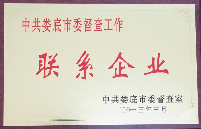 為進一步優(yōu)化我市企業(yè)發(fā)展環(huán)境,促進全市經濟持續(xù)、快速、健康發(fā)展,婁底市委決定在全市企業(yè)中選定部分企業(yè)作為“市委督查工作聯系點”,今年3月,根據市企業(yè)聯合會和市企業(yè)家協會建議,市委同意我司等七家企業(yè)作為首批“婁底市委督查工作聯系企業(yè)”,市委督查室為我司等七家企業(yè)授牌。聯系時間暫定為兩年,從今年3月起至2015年2月。
