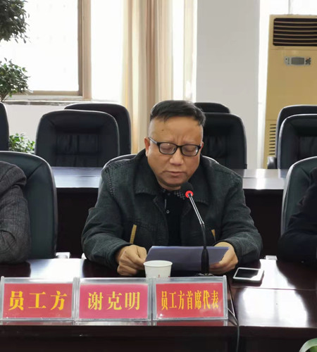 會議由企業(yè)方首席代表、公司董事長兼總經(jīng)理、黨委書記彭瑞華主持。會議邀請了市總工會、市人社局有關領導到會指導。會議首先由公司員工方首席代表、董事兼副總經(jīng)理、工會主席謝克明匯報了公司工資集體協(xié)商準備工作情況。